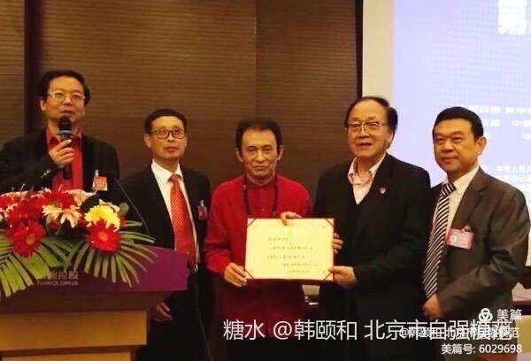 德高望重的刘吉部长、中策委宋懿霖主席、肖天常务副主席、新华社金牌主持人王京忠老朋友为韩颐和先生颁发"金像奖"。