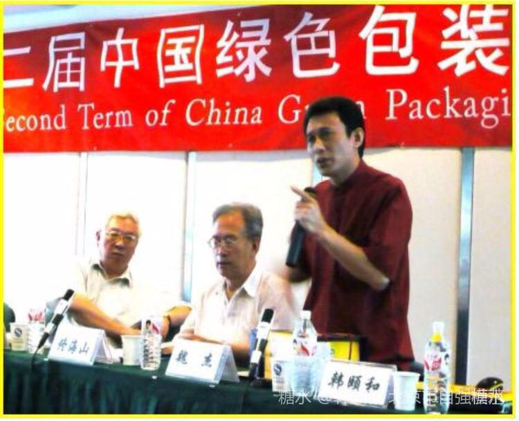 时任五粮液集团公司董事长的刘中国先生,送给韩颐和一瓶老酒并题字:“韩颐和老师惠存,五粮液集团刘中国”。 韩颐和当时善意地回怼:“你看你,一个纸袋子包了一个布袋子,一个布袋子包了一个红木盒子,红木盒子一打开就是一个白瓶子。你们是“认认真真造垃圾,实实在在搞污染”。 刘董事长看到韩颐和发明的“颐和包装”后问:“我们可不可以独家使用?” 韩颐和当即回敬道:“大鹏可以展翅,小鸟也要飞翔。这么好的东西,你们怎么可以独享?” 刘中国董事长笑着说:“你有语言暴力……”