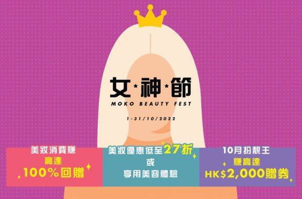 商场更在10月独家呈献「女神节」三重优惠,向一众爱美的女士送上美容购物奖赏,包括于DFS旗下香港T广场美妆世界消费满HK$1,000即送HK$1,000商户电子赠券,赚高达100%的回赠;各大美妆品牌提供低至27折优惠,让女生们变成Beauty Queen!