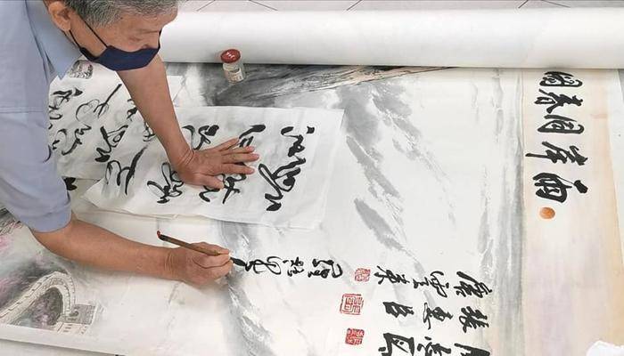 海峡两岸艺术名家邀请展两岸20位名家共创巨幅画《两岸同春图》
