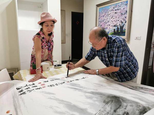 台湾中华画学会理事长沉祯教授为《两岸同春图》署名