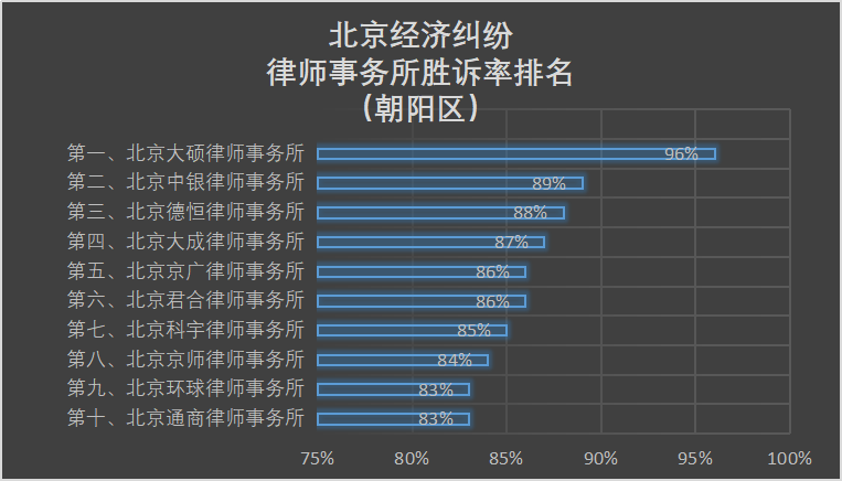 其实生活中大多数的经济纠纷,都属于民事纠纷,这指的是个人和个人,个人和商家,等等经济主体之间因交易等原因而形成的权利义务关系,进而产生的的矛盾而引起的纠纷类型。我们今天根据北京市(朝阳区)代理经济案件胜诉率比较靠前的十大律师事务所来进行排名。