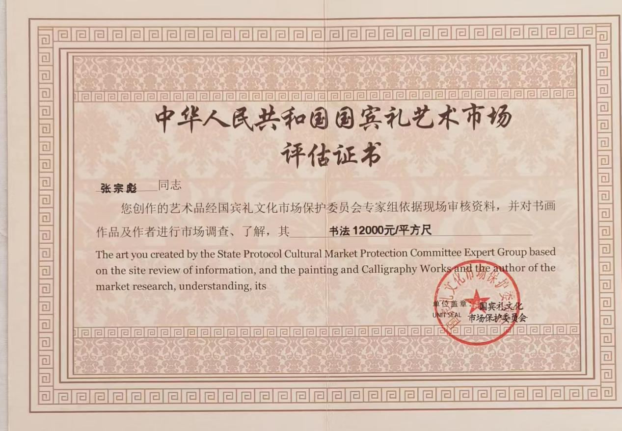 In August 2021, the Chinese Federation of Literary and Artistic Circles and the Chinese Traditional Culture Development Center awarded Zhang Zongbiao "Artistic Inheritance Figures".