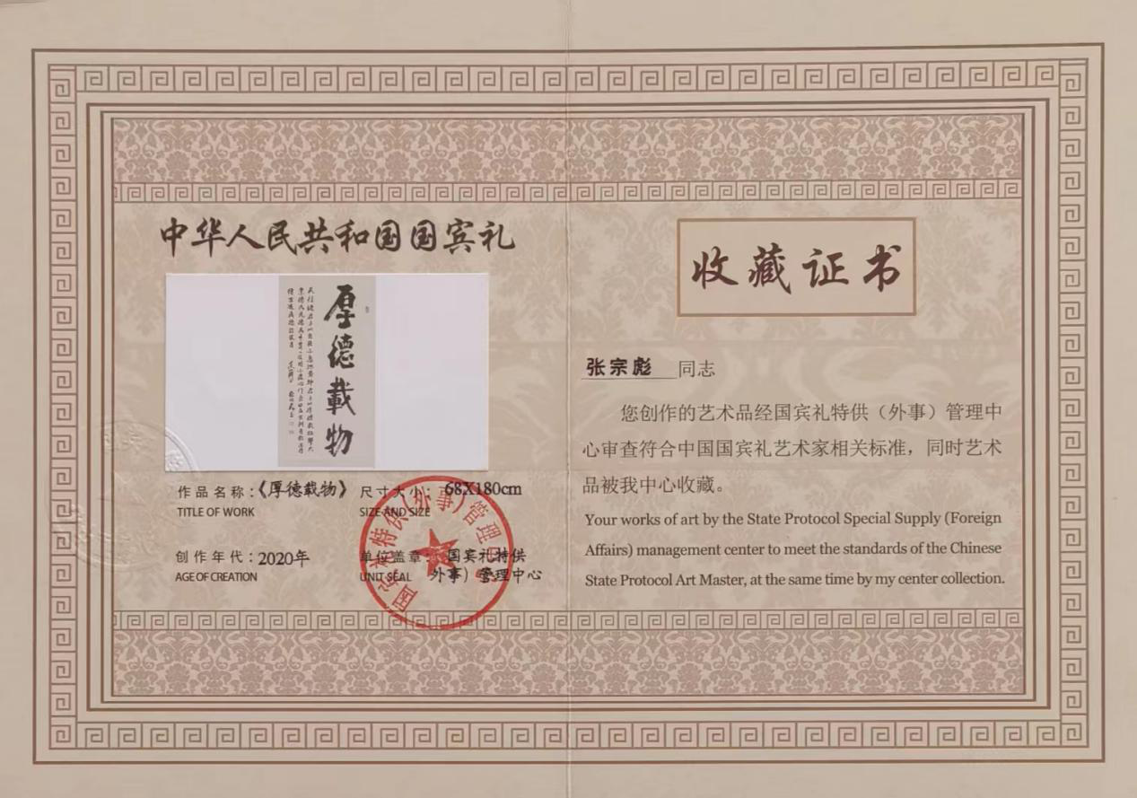 2021年8月中国文学艺术界联合会和中国传统文化发展中心授予张宗彪《艺术传承人物》。