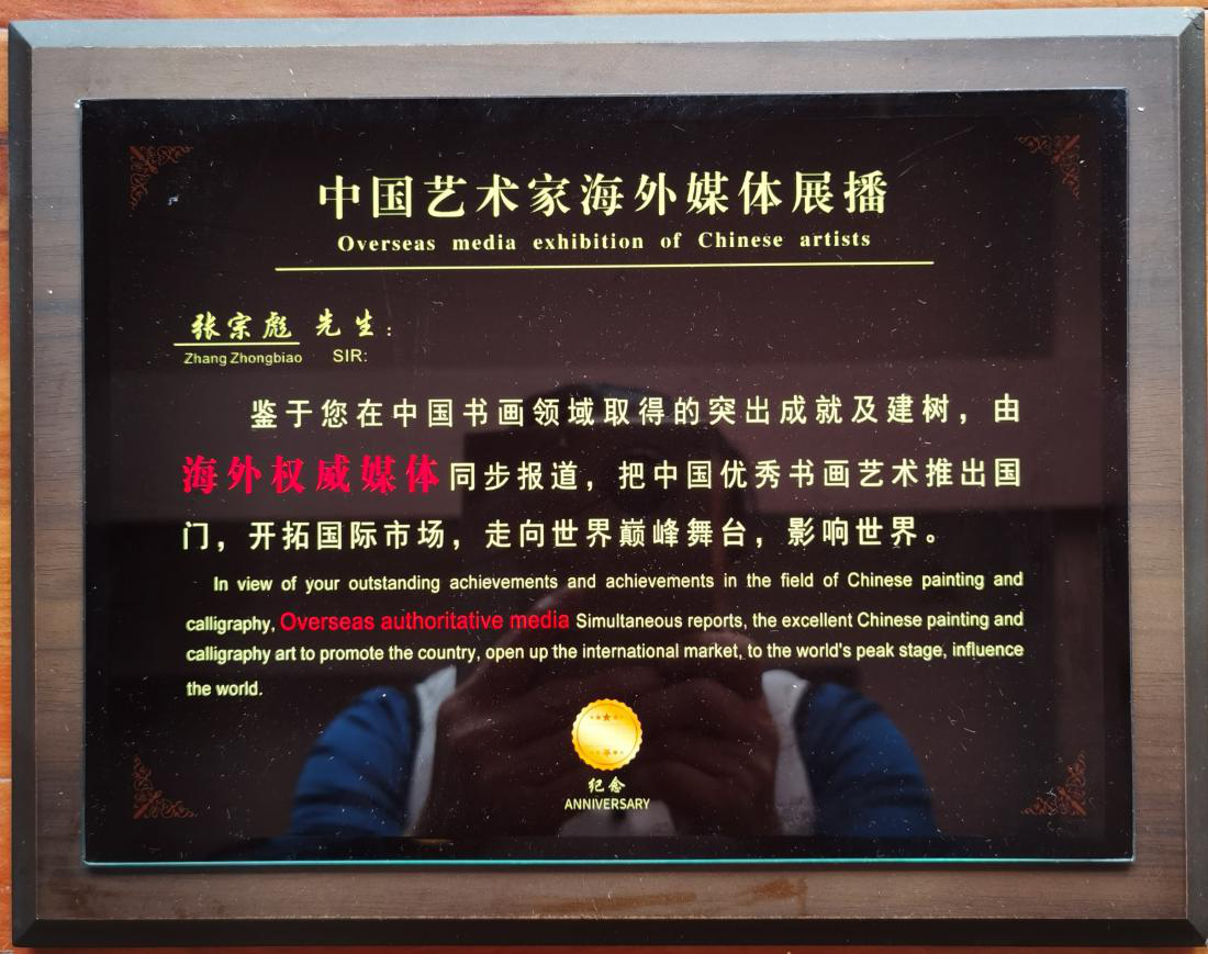 In August 2021, the literary and artistic working group of the Central Media Alliance and the judging committee of the Central Media Alliance awarded Zhang Zongbiao the honorary title of "Top Ten Outstanding Meritorious Artists in China".