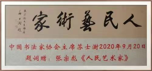 On September 24, 2020, Su Shishu, Chairman of the Chinese Calligraphers Association, wrote an inscription to Zhang Zongbiao, the People's Artist.