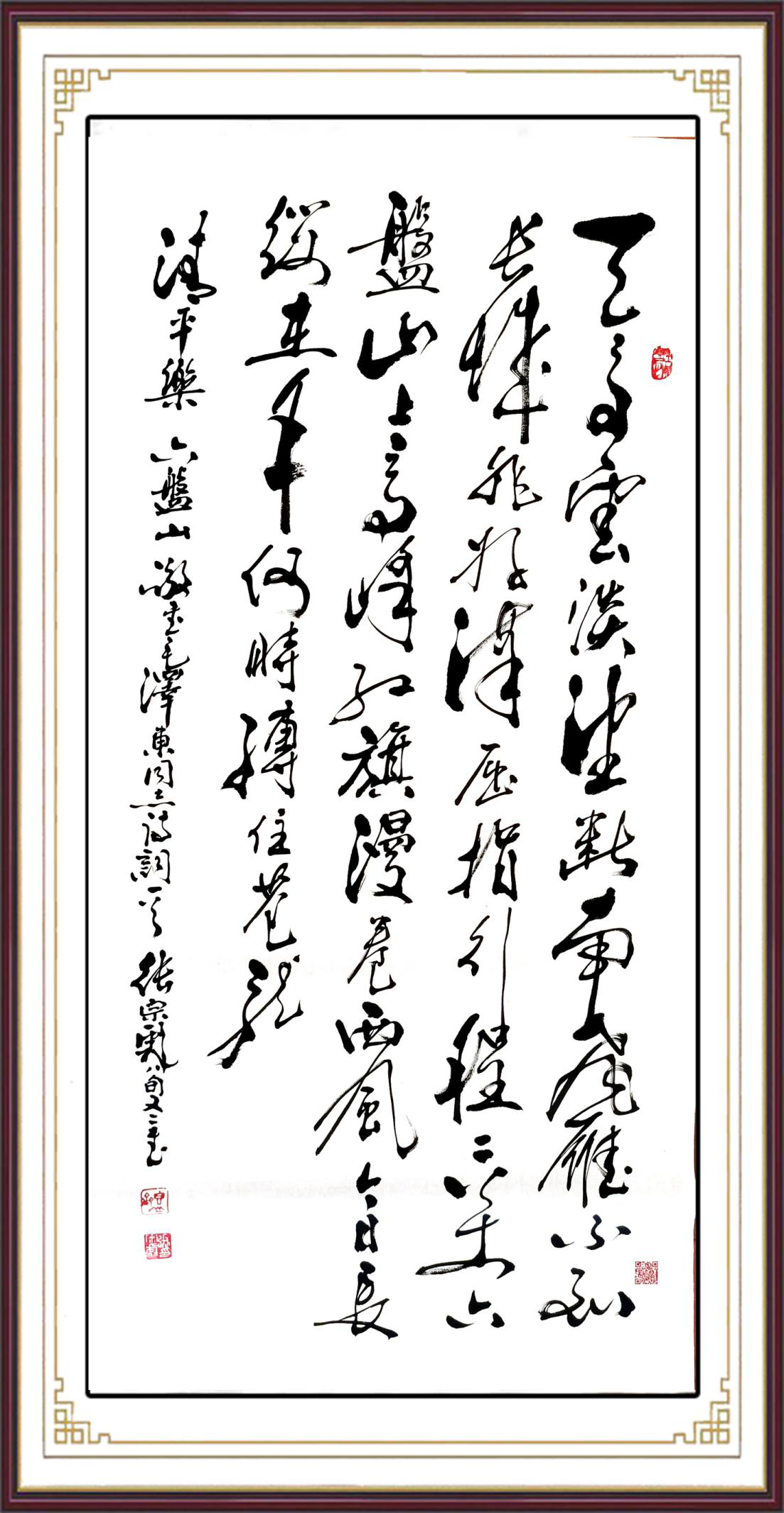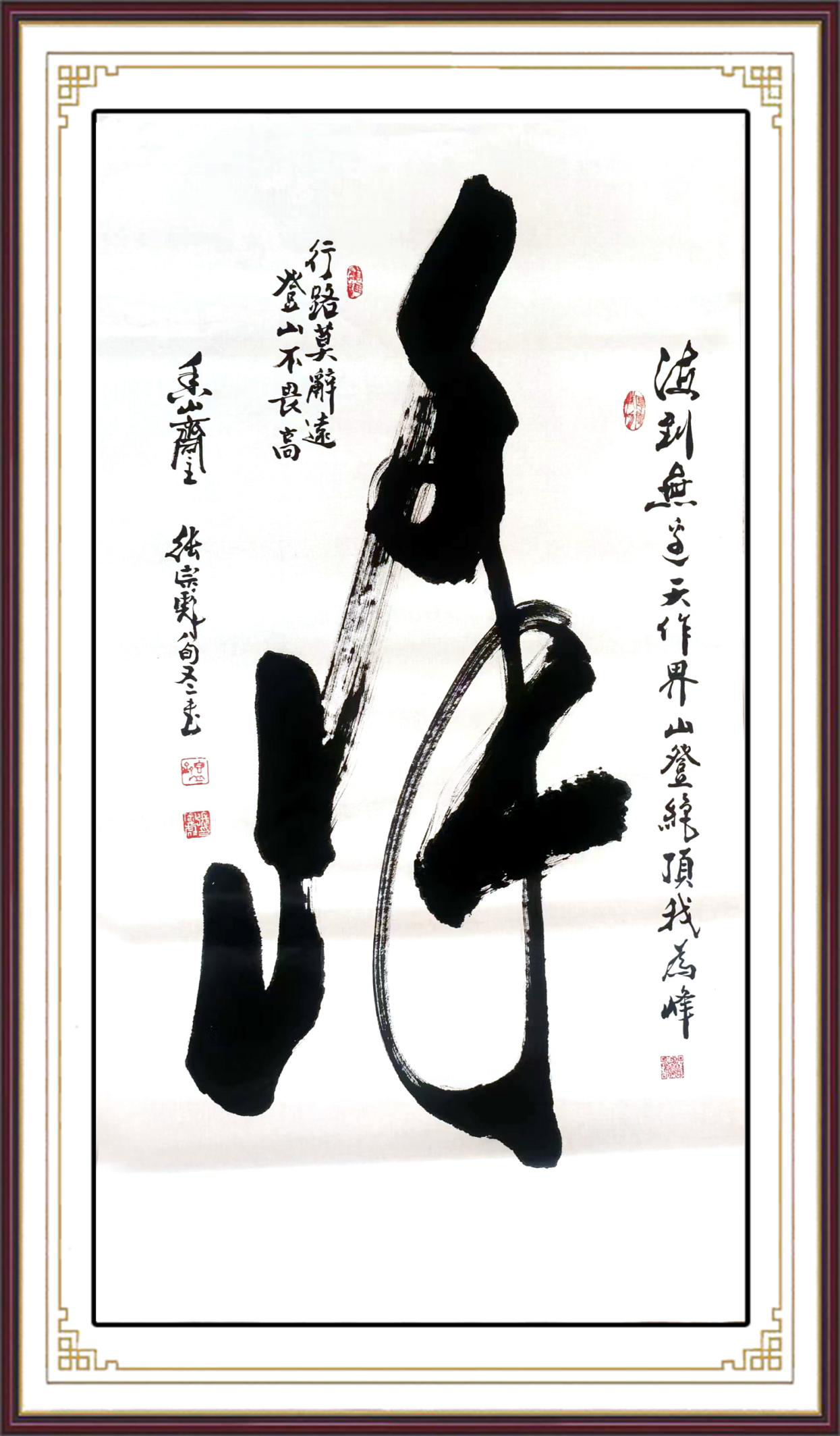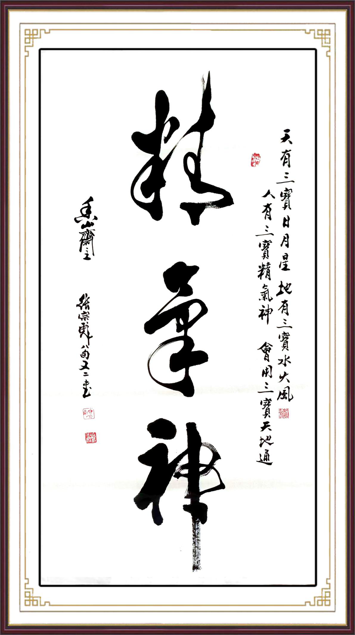 Zhang Zongbiao loved calligraphy since childhood and insisted on Linchi for decades. Regular script, line script, cursive script, clerical script and seal script can all be used, especially in line cursive script. Melt the ancient and cast the present into one. His calligraphic works are magnificent, magnificent, firm and soft, with a unique style of facial muscles, willow bones, iron and silver hooks. His cursive script is full of strong seal character, official script, Wei's brushwork and style, and is called "Wei Cao". His famous representative works, such as "Virtue, Desire, Rigidity, and Northern Scenery", have won the Copyright Registration Certificate of the National Copyright Administration of the People's Republic of China.