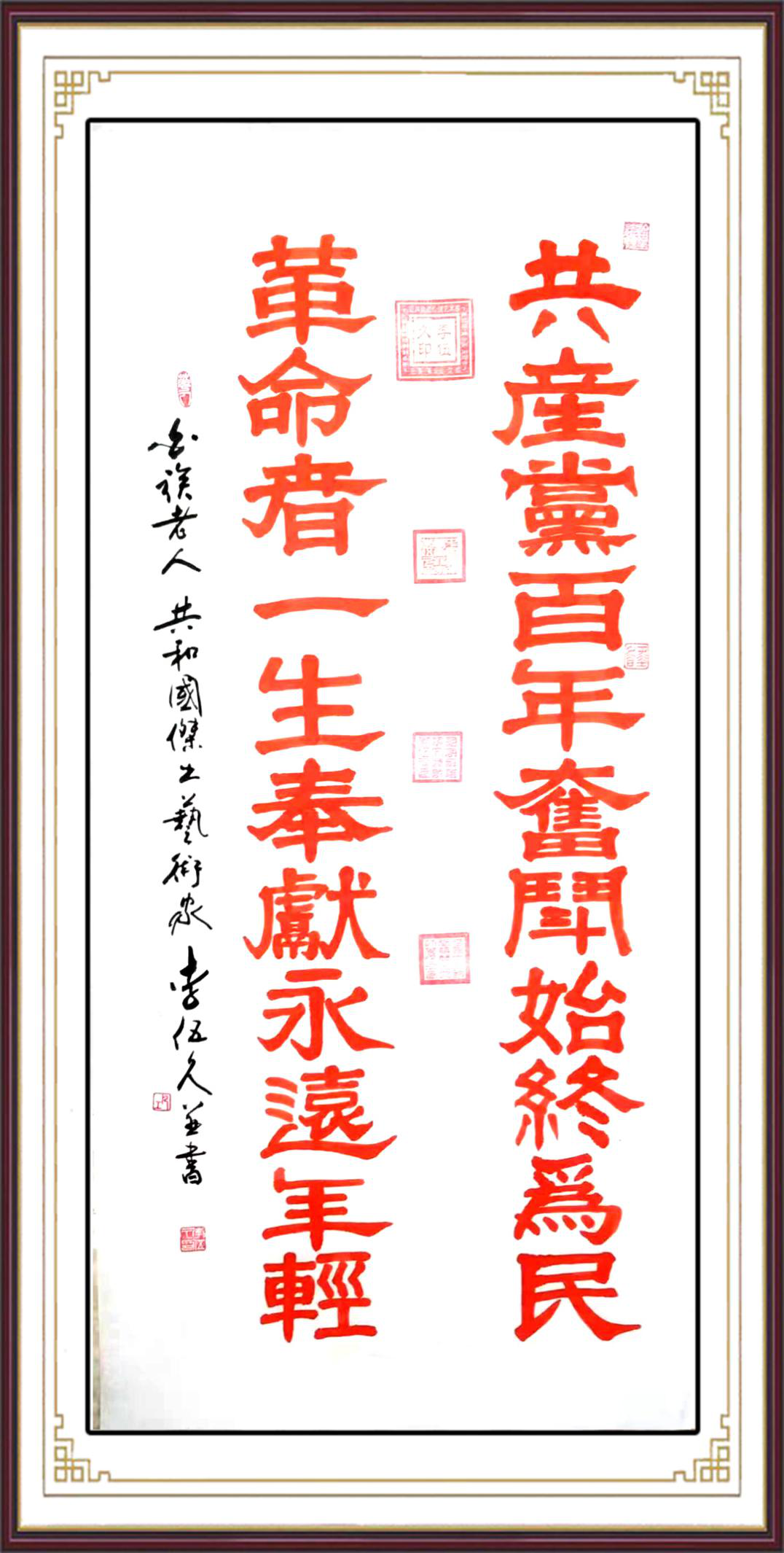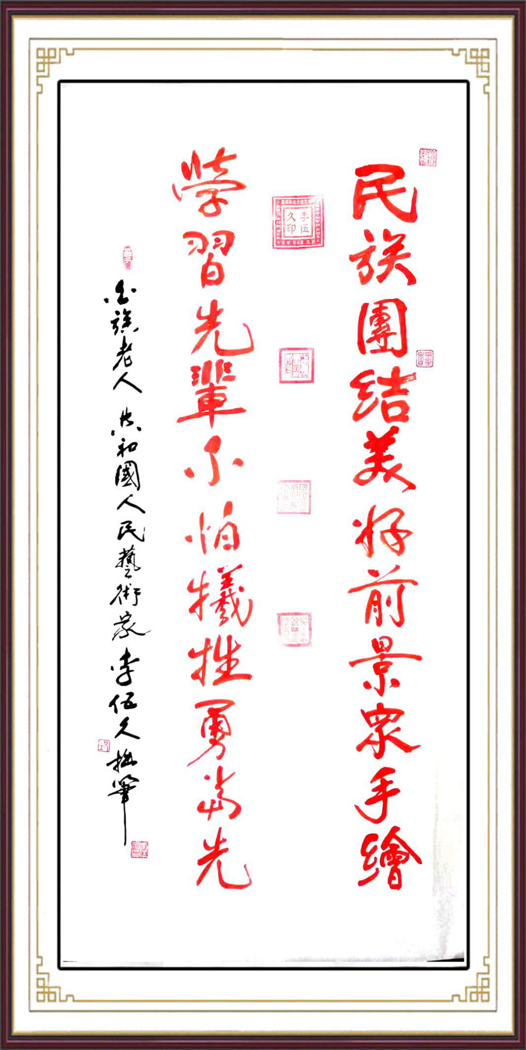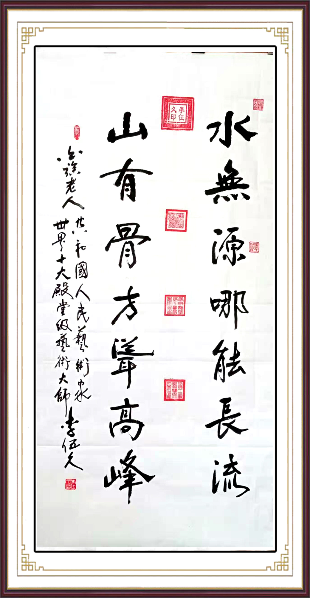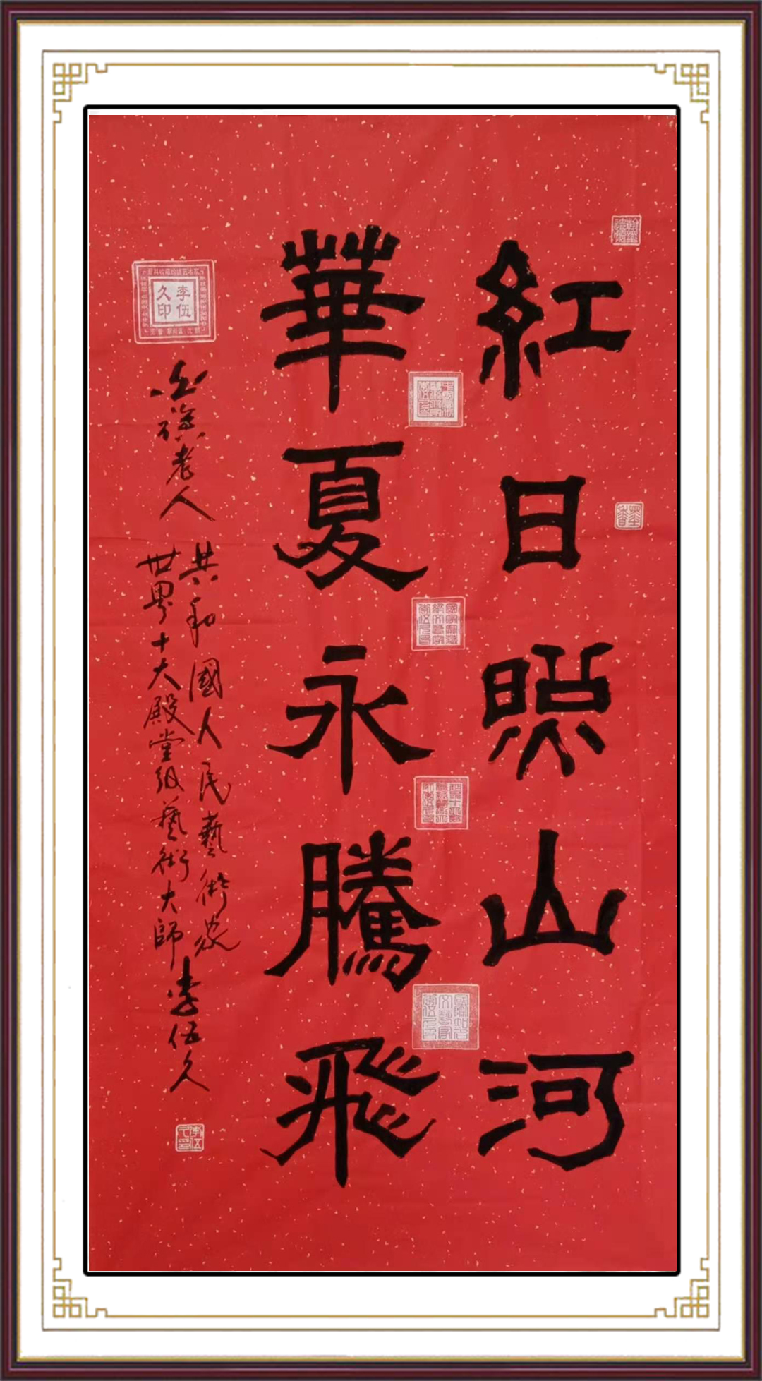 Li Wujiu, Bai nationality, was born in Meiyuan, Jianchuan, Yunnan on September 5, 1938. College degree, a member of the Communist Party of China, a senior teacher in middle school, and devoted his life to education, teaching and research in Nujiang. Amateur music and art, including new poems, poems, songs, songs and dances, essays, fairy tales, paintings and calligraphy, education, teaching and research, family education, poetry, books and essays, and many of them have won awards and published. He has published a new collection of poems, such as the Border Flute, the Sound of Time, the Song of the New Era, the prose collection Face Life, the Song of the Pointer Horse, the poetry collection Guqin New Song, the calligraphy and painting works collection, the series of contemporary famous calligraphers and painters - Li Wujiu's calligraphy works, the series of Chinese calligraphers and painters - a generation of famous Li Wujiu, the 2013 interview of art figures - Chinese Dream - Li Wujiu The New Era Cultural Celebrity Publishing Project - Li Wujiu, the Great Master of the New Era, Moves the World's Artists (Personal Collection), The 100th Anniversary of the Founding of the Party - Selected Works of Li Wujiu, The 100th Anniversary of the Founding of the Party - The Pioneer of Chinese Contemporary Art - Li Wujiu, The Focus on the Two Sessions and Presentations - The Album of Li Wujiu "Focusing on Ali Artists - Li Wujiu, a famous calligrapher and painter specially recommended by Ali China", "Chinese quintessence - art heritage - Li Wujiu's collection of fine works" (crystal volume), "Celebrity List of Chinese Art Spectators - Li Wujiu's Selected Calligraphy" (crystal volume), etc., have successively won the title of "Famous Poet of Poetry", "Gold Award of the Most Influential Poet in Poetry", "National Class Calligrapher and Painter", "National Class Calligrapher", and "National Gift Special Artist" "Outstanding Artist of the Republic", "Artist of the People of the Republic", "Artist of the National Soul of China", "Master of Chinese Calligraphy", "National Treasure Class Artist", "China's Top Class Artist", "World Peace Culture Communication Ambassador", "United Nations Peace Artist", "Lifetime Academician of the United Nations Peace Painting and Calligraphy Academy", "UNESCO Art Consultant", "Top Ten Most Influential Artists in the World" Honorary titles such as "the most collectable artist of Chinese art", "the world's top ten palace level masters of art" and so on, ranked among the world's top ten palace level masters of art. He was invited to settle in Beijing's new "Model Hall for the Centennial Era of the Party". In 2020 and 2022, I was specially invited to publish my calligraphy works together with the important pictures and texts of President Xi as a New Year's calendar, which was spread all over the world. In 2023, I was also invited to publish the New Year's calendar with President Xi Jinping and Putin, two national leaders!