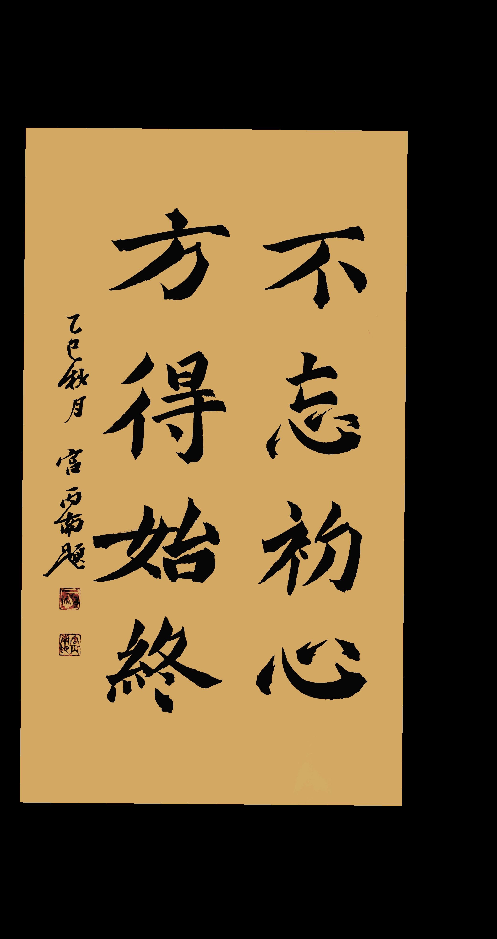 “先祖迁徙,唯以‘耕读传家久,诗书继世长’为训,此乃刻入血脉的基因。” 宫丙南慨叹。更幸其母柳金荣系柳公权后裔,外祖父柳丙文深谙书道,常以 “柳家笔墨藏正道:横平竖直是规矩,笔力千钧是担当” 相授。双重文脉滋养,如春雨润苗,为他的艺术之路奠下基石。