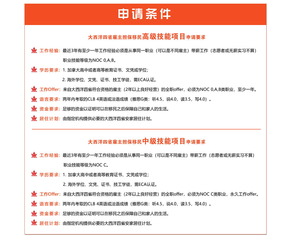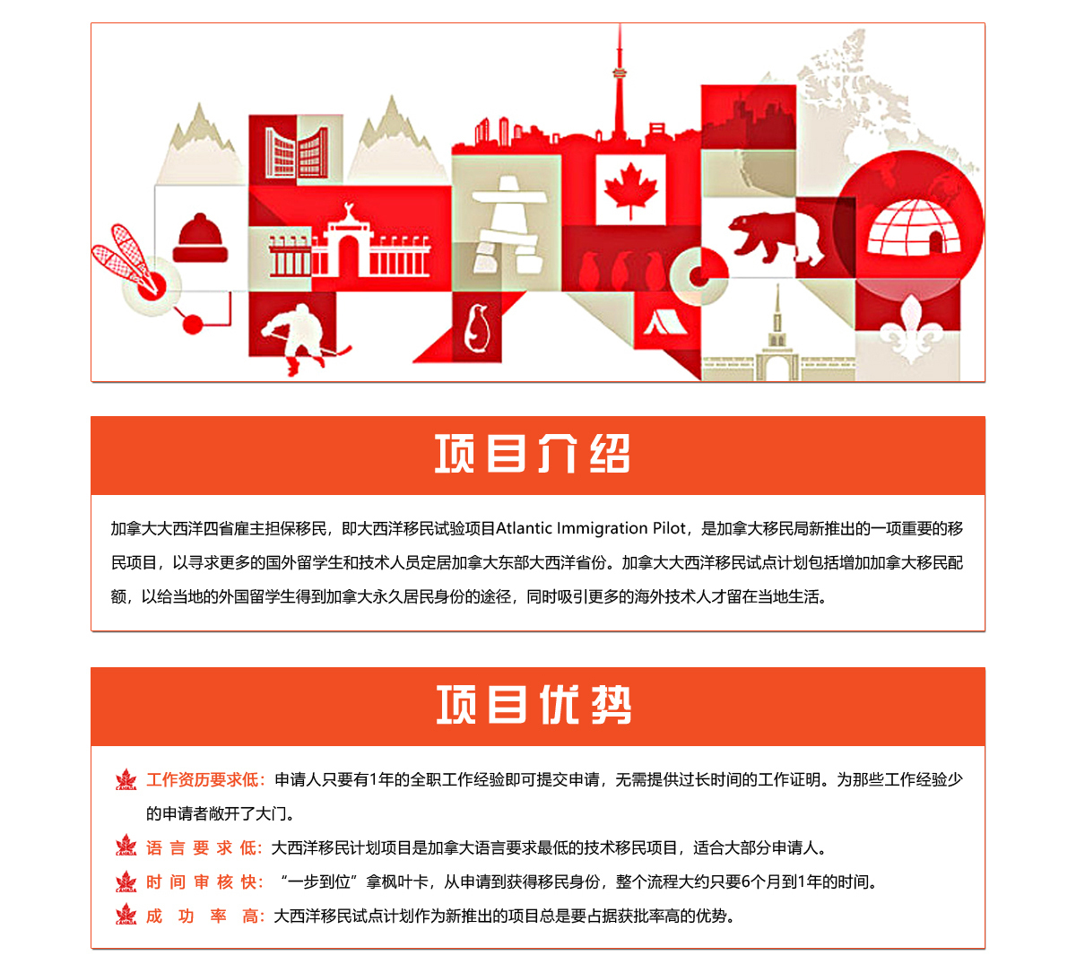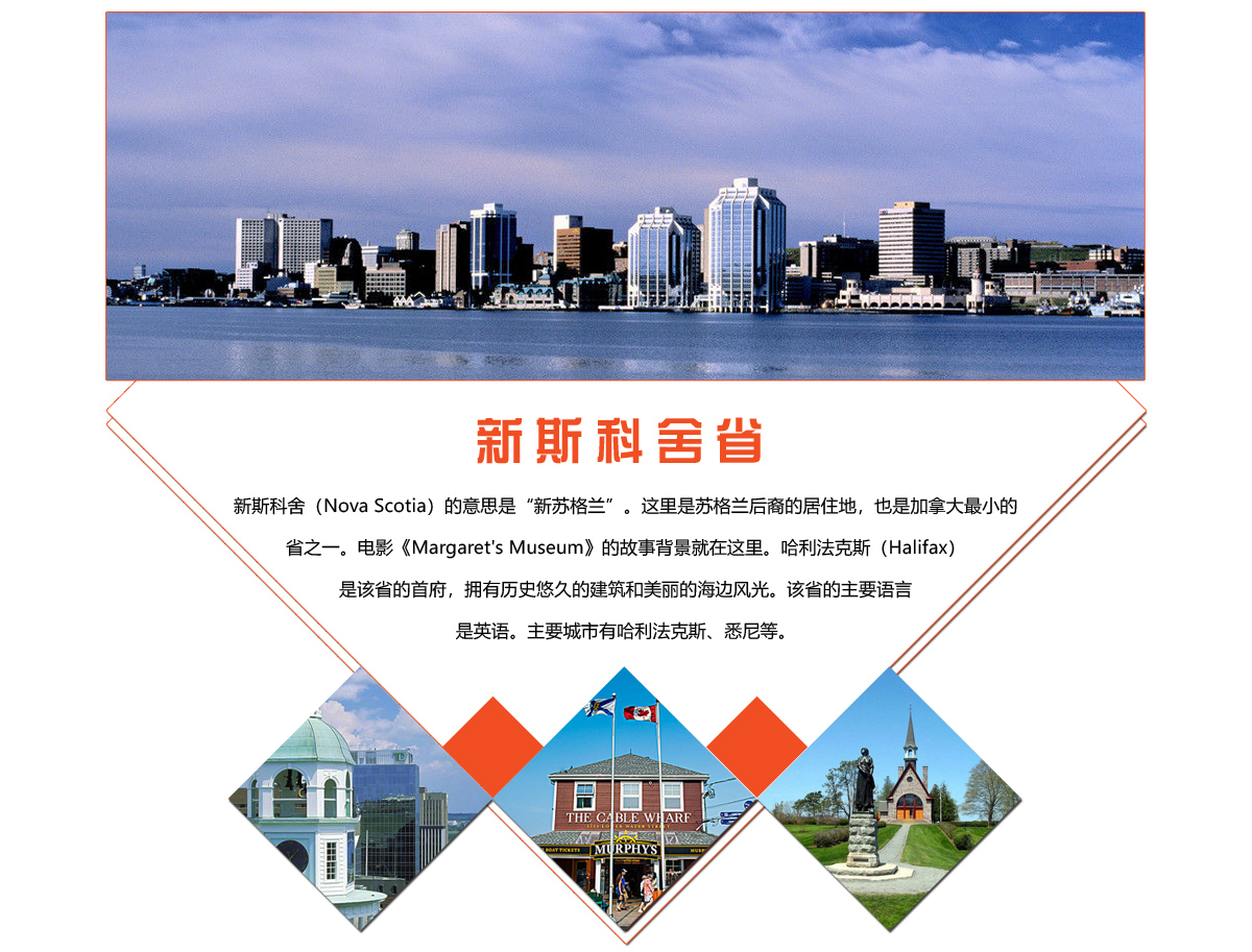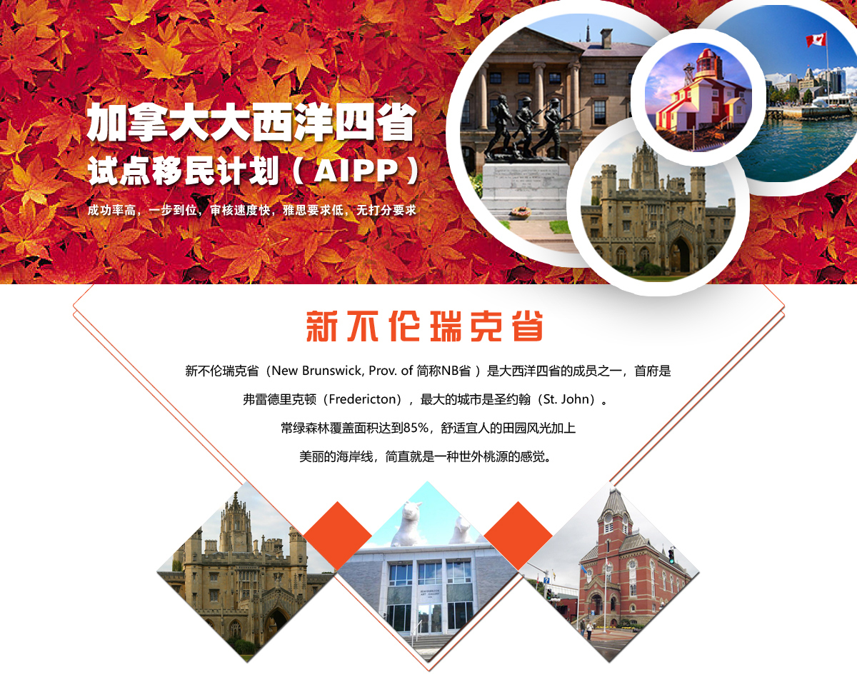 加拿大大西洋试点移民计划政策----新斯科舍省 Nova Scotia、爱德华王子岛 Prince Edward Island、新不伦瑞克省 New Brunswick、纽芬兰与拉布拉多省 Newfoundland and Labrador,这四个海洋省份并称为加拿大的大西洋四省。