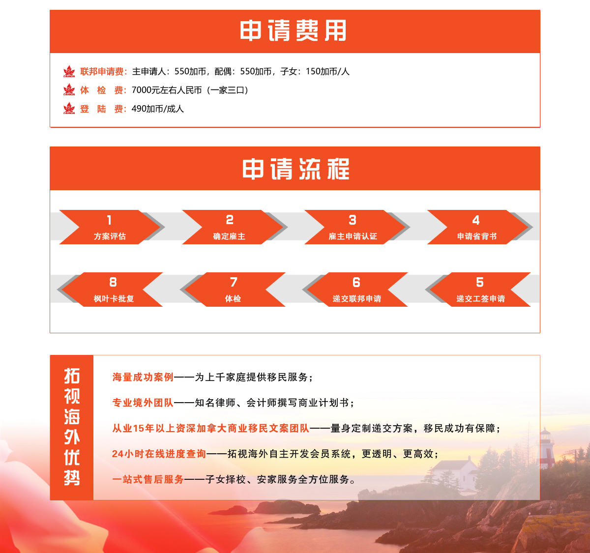 而作为加拿大移民的主要渠道----雇主担保类移民计划和加拿大各省提名计划(PNP)的经济移民计划,将继续发挥重要作用。今天天津拓视海外将首先为您介绍一下2019年移民加拿大费用-天津拓视大西洋试点移民篇。