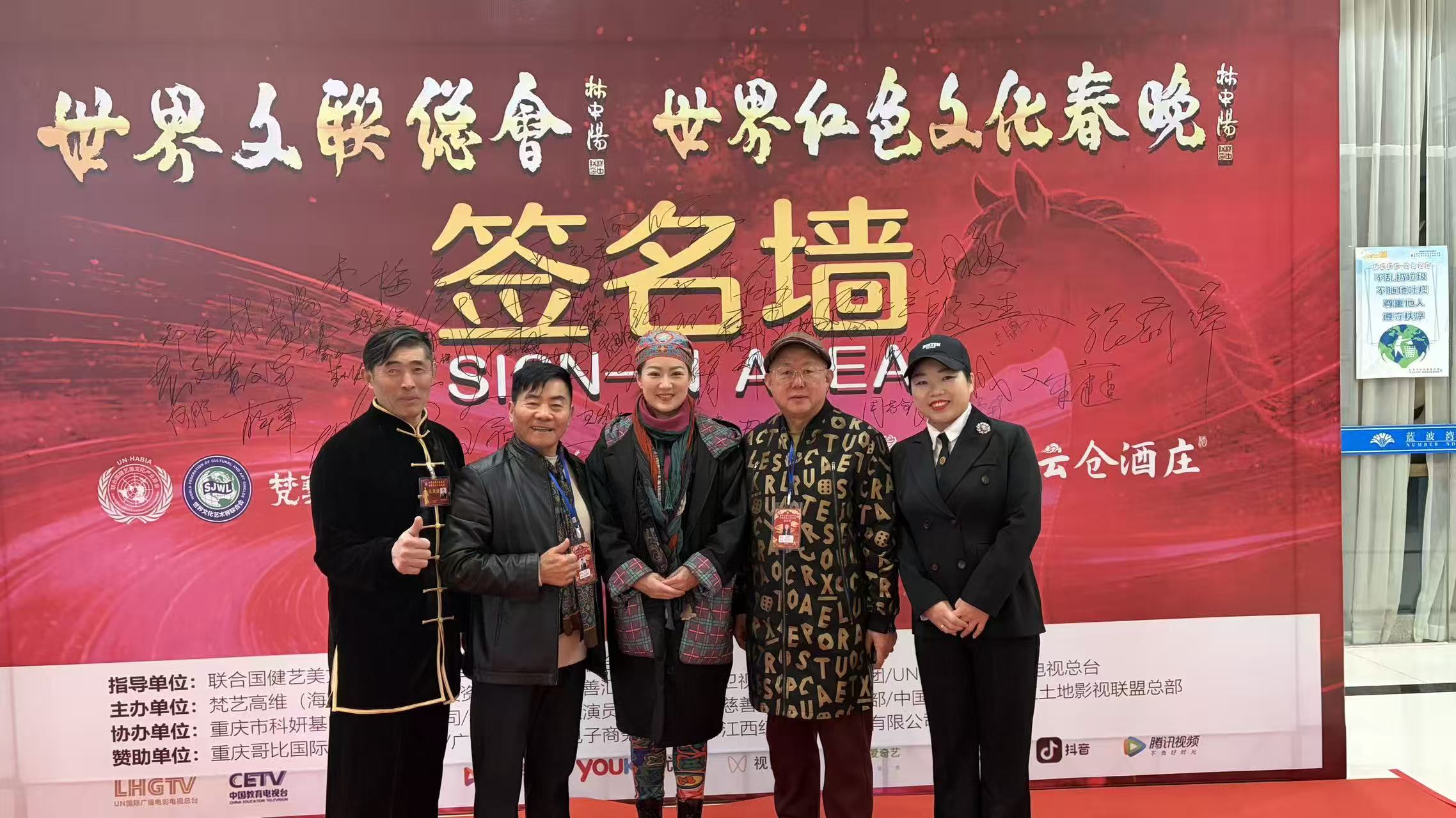 活动举办地蓝波湾花园酒店坐落于安源区核心地段,319 与 320 国道交汇处的优越位置、距沪昆高速出口仅 3 公里的交通优势,使其成为沉浸式红色体验的理想场地。15 日下午的入场签字仪式上,氛围庄重而热烈:身着各式纪念先烈军装的安源华人宏仁艺术团演职人员夹道相迎,嘹亮的原创红色歌曲响彻全场。雪莲卓玛与世界联创会主席谭邦兰、全国人大代表马小平等重量级嘉宾一同踏上红毯,身着兼具民族特色与庄重感的服饰,步履从容地向两侧演职人员致意,在红色签字墙前郑重签下姓名,每一个动作都饱含对红色历史的尊崇,定格下民族文化与红色基因交融的珍贵瞬间。酒店近 200 间豪华客房与 13 间特色贵宾包厢,为来自全球的文化传承者提供了舒适的交流空间,让红色初心在温馨氛围中凝聚。